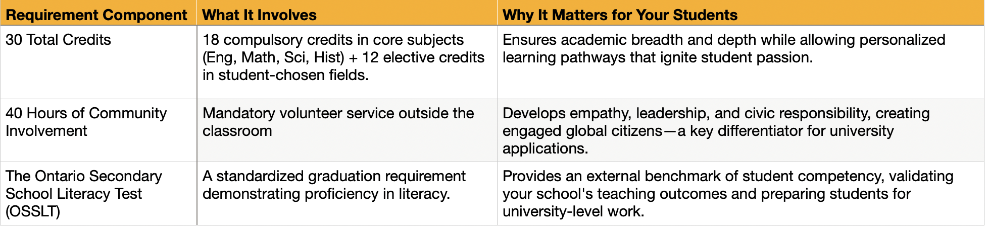The OSSD is designed to develop more than just academic proficiency. Its balanced structure fosters intellectual, social, and civic maturity.