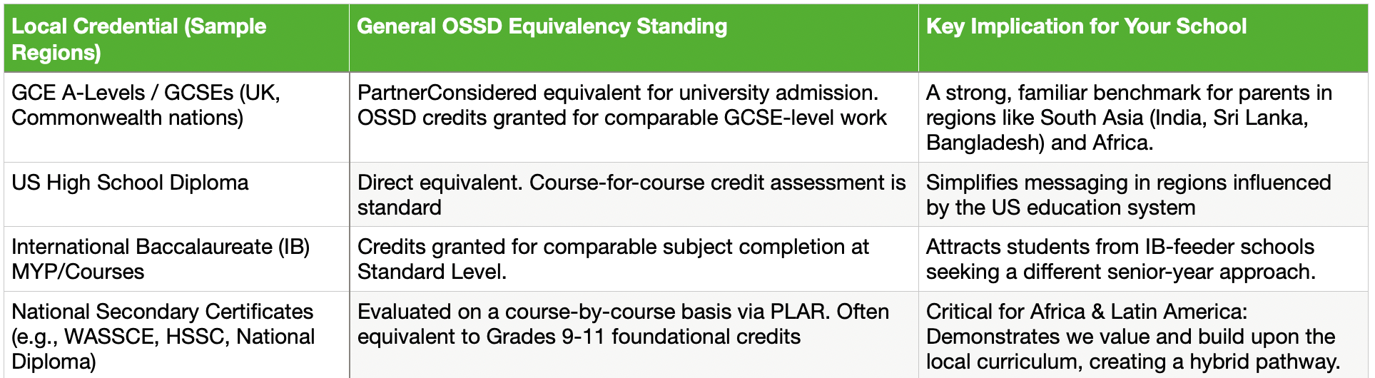 The OSSD is widely recognized by educational authorities worldwide as equivalent to other high school graduation credentials. This formal equivalency helps parents and ministries of education understand its value immediately.
